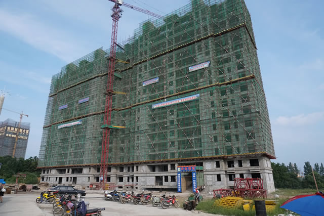在松江花园项目现场,上百名施工人员在炎炎烈日下挥洒着汗水,奋战在工地。该项目主要服务于稻谷溪湿地公园双征安置,总投资约4500万元,目前1号至5号楼的主体工程建设已全面铺开,预计今年底完成主体结构,2018年2月主体封顶。