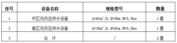 3、项目内容:金投•奥体庄园项目无负压供水设备(具体内容见下表)包括运输、调试、检验、培训以及售后服务等全部相关服务工作。