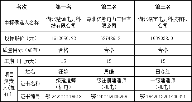 松滋金松新能源荆州市北湖村、沿河村、石马村屋顶分布式光伏发电项目安装工程于2023年1月12日发出招标邀请,2023年1月19日在湖北松滋金松投资控股集团有限公司开标室开标,并于2023年1月19日完成评标工作。根据评标委员会提交的评标报告,松滋金松新能源科技有限公司已经确认评标结果,现进行评标结果公示。