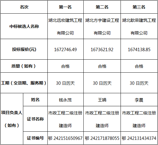 mansion88明升创卫环境整治项目(松滋市人才公寓生态停车场)于2023年02月27日发出投标邀请书,2023年03月07日在湖北松滋金松投资控股集团有限公司开评标室开标,并于2023年03月07日完成评标工作。根据评标委员会提交的评标报告,湖北松滋金松投资控股集团有限公司已经确认评标结果,现进行评标结果公示。