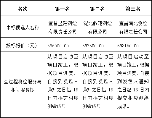 松滋市临港工业园扩园(二期)建设项目全过程测绘服务项目(第二次)于2023年6月7日发出招标邀请,2023年6月15日在湖北松滋金松投资控股集团有限公司开标室开标,并于2023年6月15日完成评标工作。根据评标委员会提交的评标报告,松滋金松工业投资开发有限公司已经确认评标结果,现进行评标结果公示。