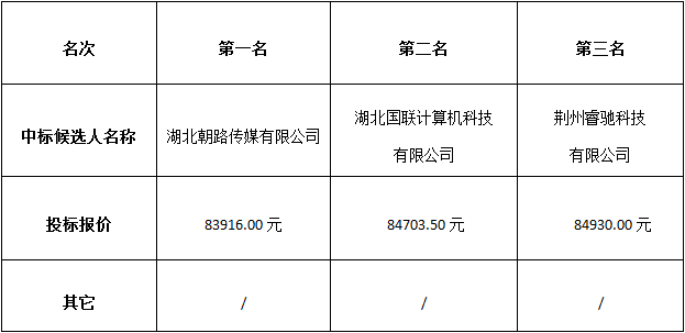 稻谷溪城市湿地公园配套设施设备(停车场收费系统)采购项目于2018年11月28日发布询价邀请函,2018年12月5日在松滋市稻谷溪城市湿地公园会议室进行评标。根据评标小组提交的评标结论,湖北金投物业管理有限公司已经确认评标结果,现进行中标候选人公示。