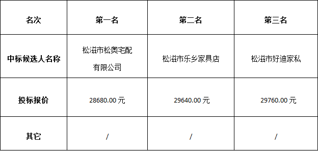 金投物业员办公家具采购项目于2018年12月10日发布询价邀请函,2018年12月13日在松滋市稻谷溪城市湿地公园会议室进行评标。根据评标小组提交的评标结论,湖北金投物业管理有限公司已经确认评标结果,现进行中标候选人公示。