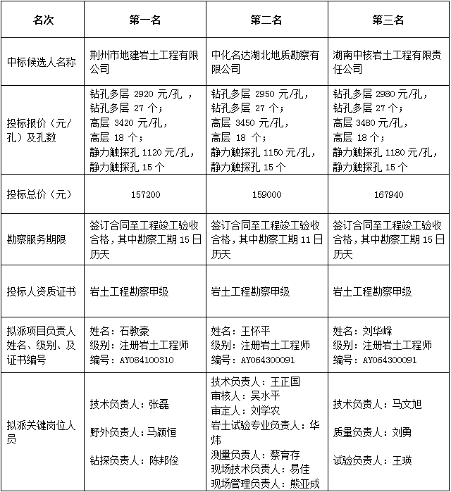 松滋市人才公寓建设项目勘察于2018年12月29日在松滋金投商业开发有限公司发布投标邀请书,2019年1月5日在松滋市mansion88明升开评标室开标。根据评标委员会提交的报告,松滋金投商业开发有限公司已经确认开标结果,现进行中标候选人公示。