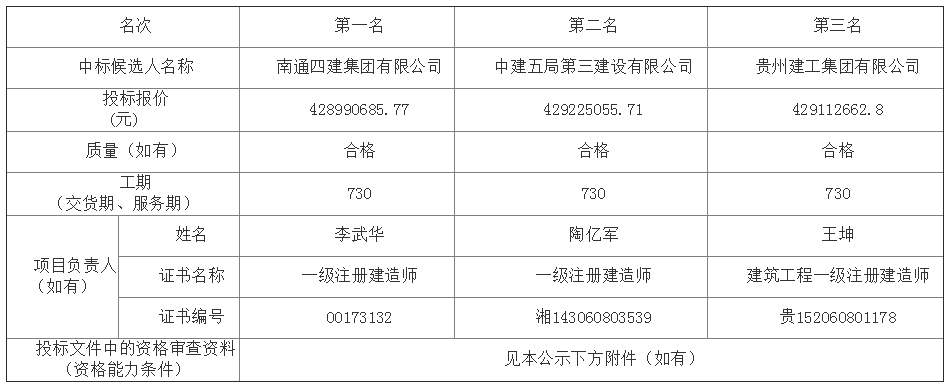 松滋市金投·新城壹品建设项目第三标段松滋市金投·新城壹品建设项目第三标段于2019年05月08日在湖北省电子招投标交易平台发布资格预审公告,2019年08月27日在开标室(1)开标,并于2019年08月27日完成评标工作。根据评标委员会提交的评标报告,湖北松滋金投置业有限公司已经确认评标结果,现进行评标结果公示。