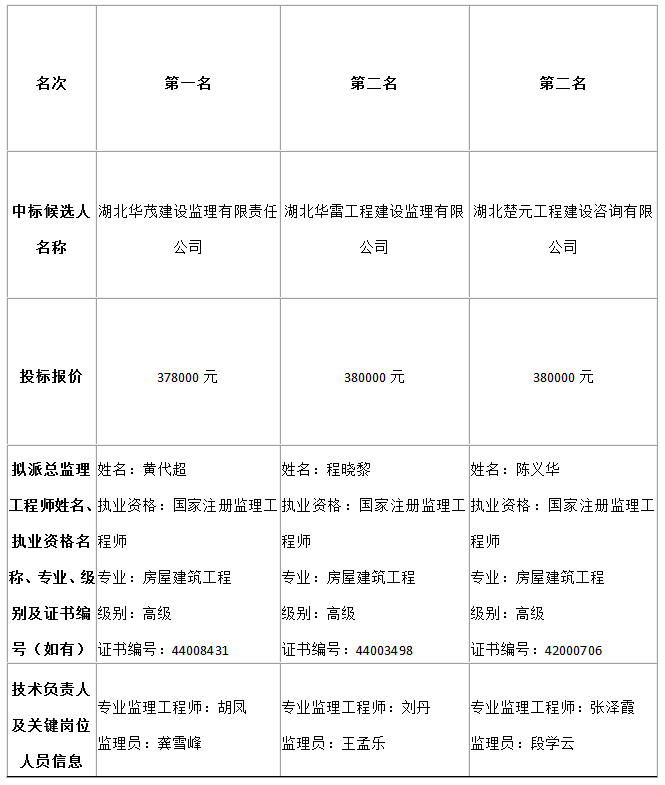 松滋市服装产业园(B区)职工宿舍建设项目监理于2019年11月27日向被邀请单位发出投标邀请,2019年12月03日在mansion88明升开评标室开标。根据评标小组提交的评标报告,松滋金松工业投资开发有限公司已经确认评标结果,现进行中标候选人公示。