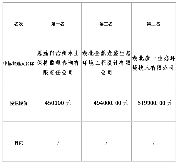 尚含绿城等项目进行水土保持方案编制等服务采购项目于2020年1月15日发布询价邀请函,2020年1月20日在mansion88明升开评标室开标。根据评标小组提交的评标结论,实施单位已经确认开标结果,现进行中标候选人公示。